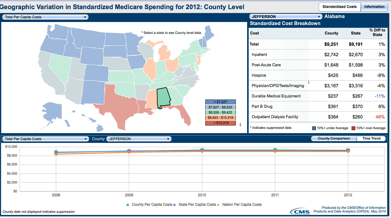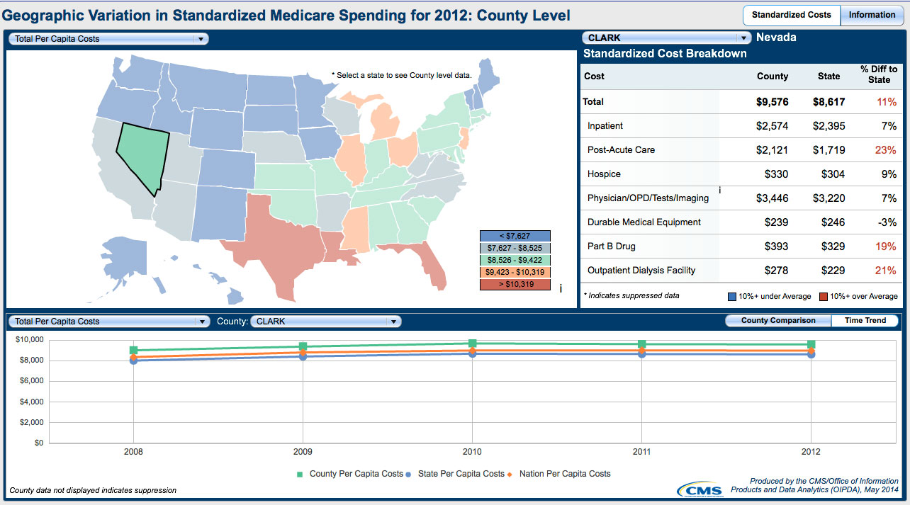 First, it's essential to understand what we're looking at (and here, I will focus on Medicare): when reviewing Medicare "spending trends", you are not really looking at spending; rather you are seeing provider billing information. Providers treat patients, then bill Medicare per a preset pricing list according to diagnostic related groups, or DRG's. Medicare spending is a country-wide buildup, provider by provider, of DRG's billed for services provided. The actual costs of providing those particular mix of services are nowhere reflected in Medicare billing. Spending over the allowed DRG limit is simply shifted to other patient categories (private insurance, private pay, charity). Almost all providers bill above the allowed per-DRG Medicare rate; but costs for the more efficient providers can line up with these DRG rates.
