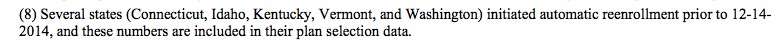 - Vermont: I don't have a 12/15 report from the VT state exchange, but they did release one from 4 days earlier. It claimed 25,867 total QHP selections for 2015. The HHS report says it was 21,709...as of 4 days later. Again, a 4,100 difference.