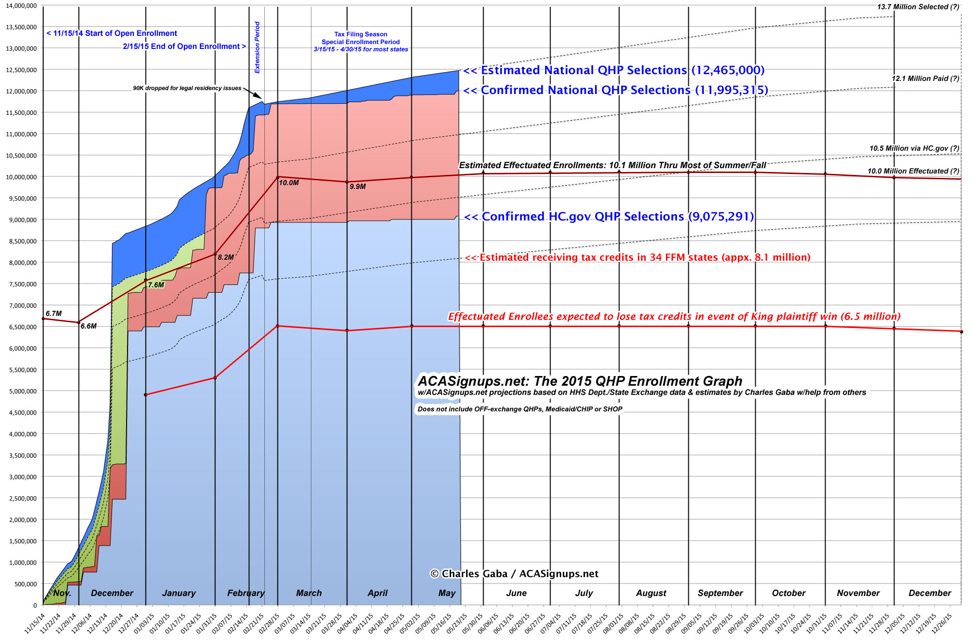 Unfortunately, there's still no state-by-state breakout of today's HC.gov number. However, combined with the other off-season/tax SEP numbers reported from (most) of the state exchanges, this (including today's Minnesota update of 64K QHPs) does bring the grand total number of confirmed 2015 QHP selections up to exactly: 11,995,315.