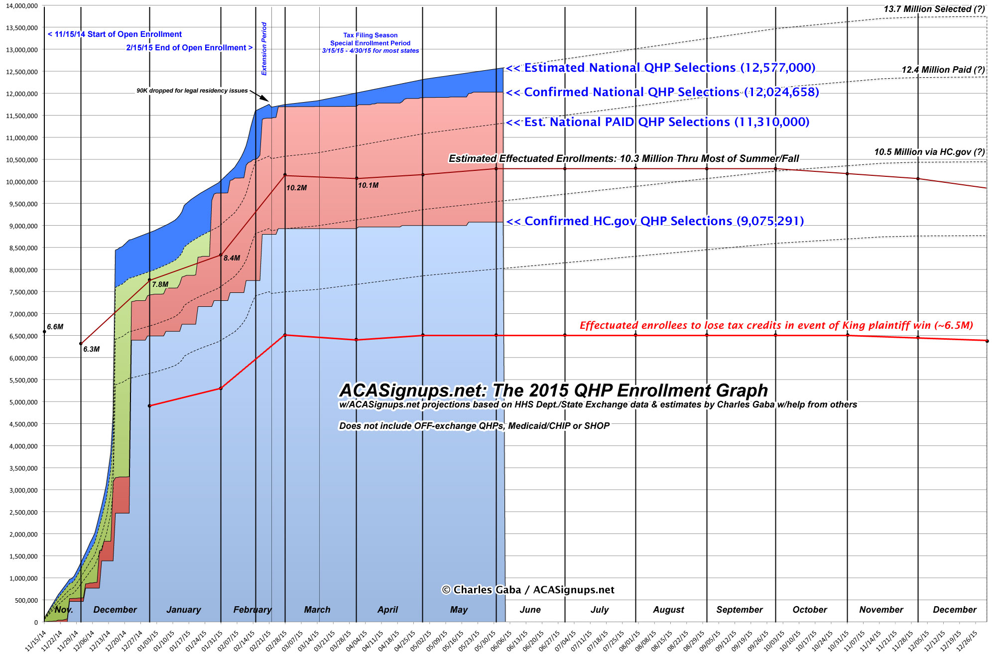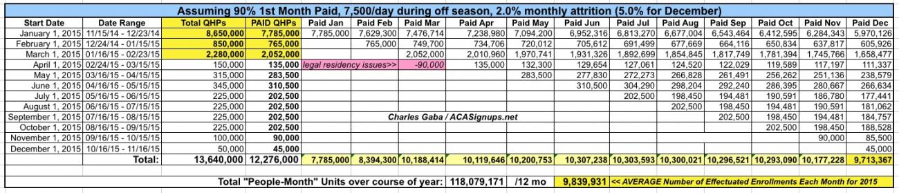 In other words, the actual attrition rate (that is, the net reduction in effectuated enrollments) from 2/22/15 until 3/31/15 was only about 3%, not 13%...and the actual net reduction in enrollments as of 3/31 was only around 330,000, not 1.5 million.