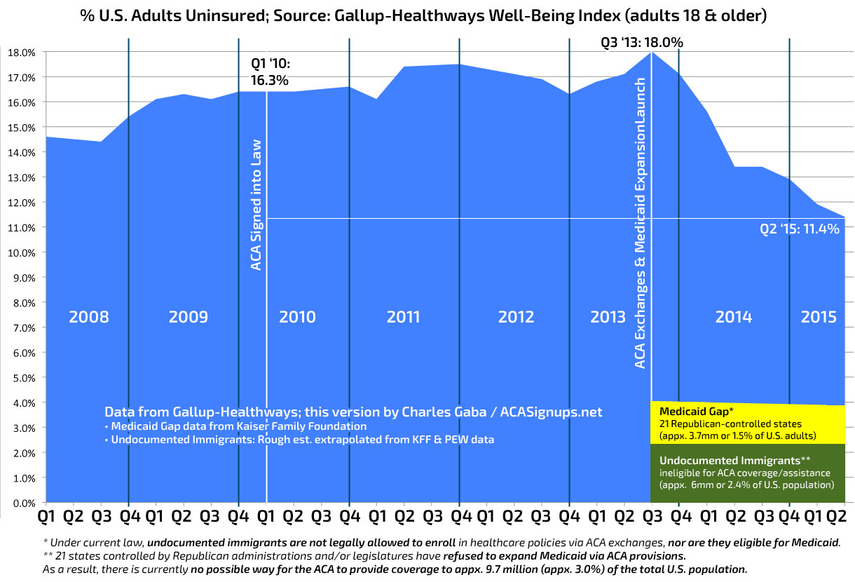 MAJOR UPDATE x2: GALLUP: Uninsured rate drops to 11.4% as of end of June 2015