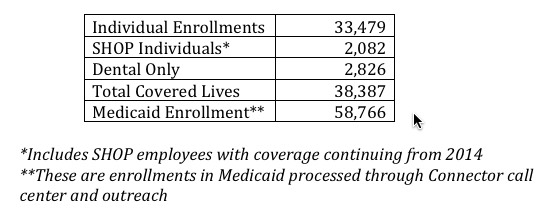 So I contacted the exchange to clear up the confusion. Executive Director Jeff Kissel explained that the larger number is much more accurate. He said that the discrepancy stemmed from a significant lag time in enrollment reporting from carriers. Kissel confirmed that the Connector’s current in-force enrollment numbers are roughly 20,000 people with HMSA and 11,000 people with Kaiser.