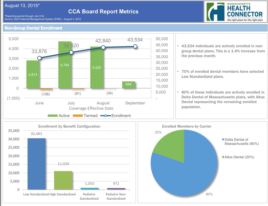 The Massachusetts Health Connector just held their monthly board meeting this morning, and have released the July dashboard report with a whole mess of demographic data for Baystate-obsessed nerds to revel in.