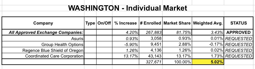 Washington State: 2016 *approved* rate increases: 4.2% weighted avg. (potentially up to 5%)
