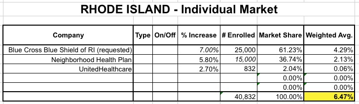 Assuming that's the case and assuming BCBS ends up with their 7% hike, here's what Rhode Island looks like for the individual market next year: