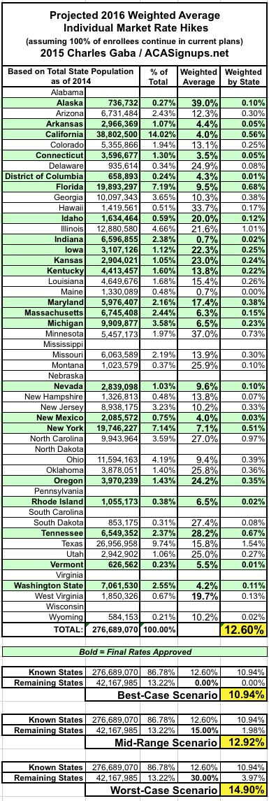 (near) Final Projection: National 2016 Weighted Avg. Rate Hikes to be between 11-15%