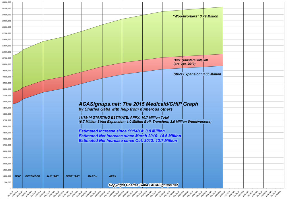 Every month the CMS division of the HHS Dept. issues a formal Medicaid/CHIP enrollment report, and pretty much every month (until now) the numbers have grown rapidly. This has been the case even during the "off-season", since there isn't an off season for Medicaid/CHIP enrollment; those eligible for the programs can enroll year-round (on the other hand, promotion/outreach efforts are higher during Open Enrollment, so enrollment does still tend to be more rapid during that period).