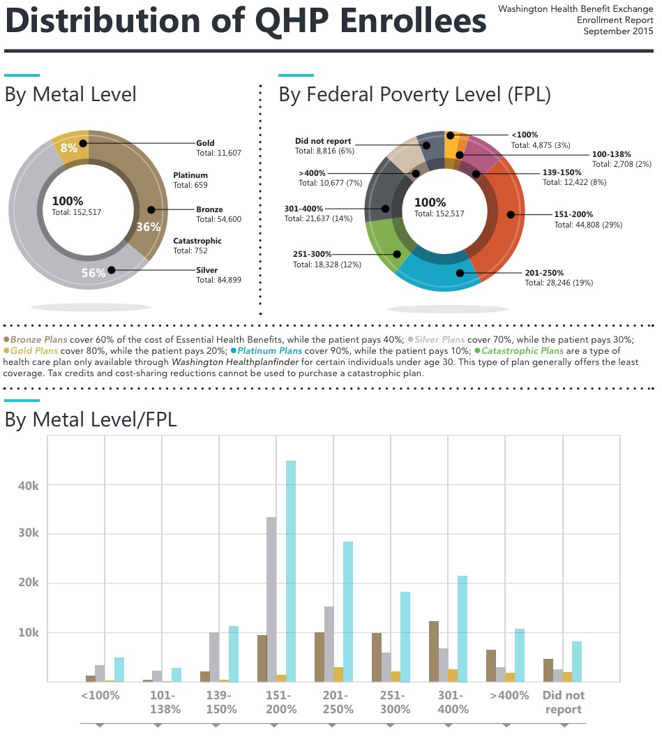 Fresh on top of the Covered California data drop, the Washington Health Benefit Exchange (the 3rd-largest state-based exchange after California and New York) has published an updated, detailed enrollment report: