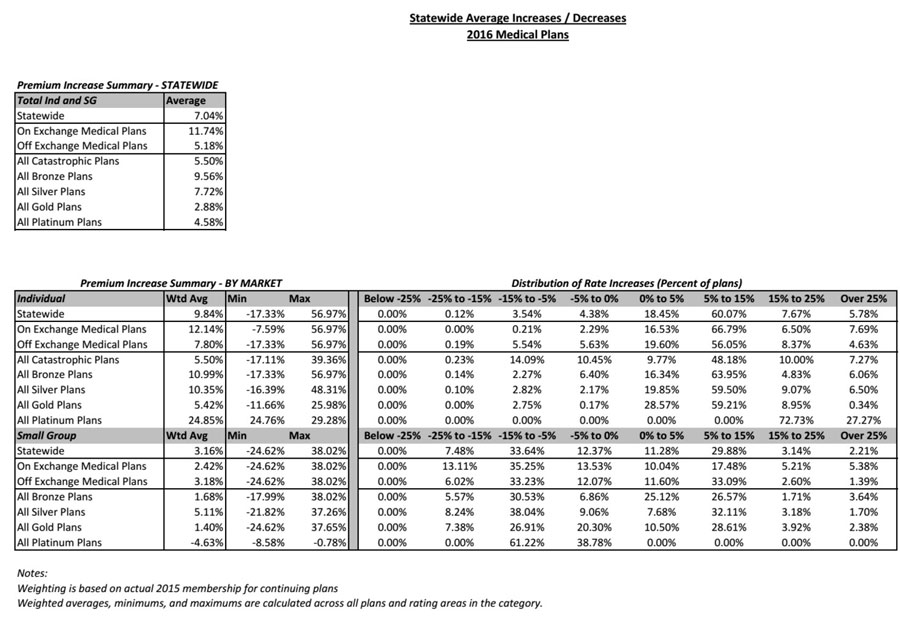 Colorado: APPROVED weighted avg. 2016 rate hikes: 9.8% (down from 13.1% requested)
