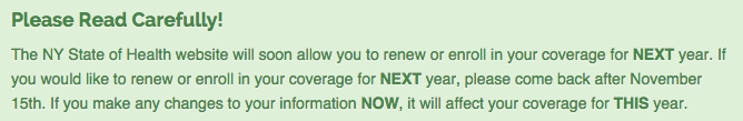11/2/15 UPDATE: There was a series of Marketplace outages today meaning New Yorkers struggled to get logged on and start shopping. It is also becoming increasingly evident that most Health Republic insurees have yet to be notified they need to sign up for new coverage in just 13 days.