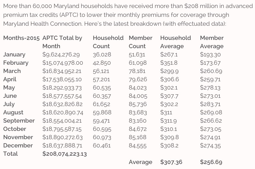 Now, this isn't quite accurate, because the roughly 30% of Marylanders who aren't receiving APTC assistance aren't included here. It's conceivable that those paying full price have dropped off, more than cancelling out the net gains in APTC enrollees.