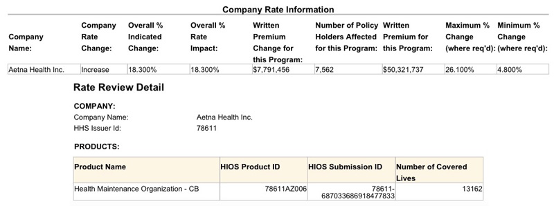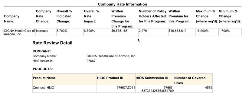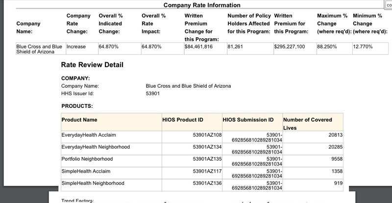 The data below is drawn from two sources: The RateReview.HealthCare.Gov database and Arizona's Health Filing Access Interface (HFAI) SERFF database.