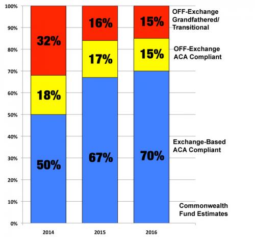 All of this brings me to the headline above: The Commonwealth Fund just issued a study about exchange-based vs. off-exchange policies, and while the trend is similar, the actual percentages and hard numbers are quite different:
