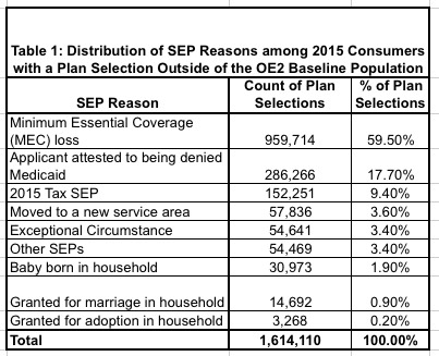 Last year, SEPs made up appx. 15.2% of total annual QHP selections nationally (2.1M / 13.8M). If you subtract the #ACATaxTime, this drops to 14% (although some of those 214K would presumably have qualified for a different SEP anyway).