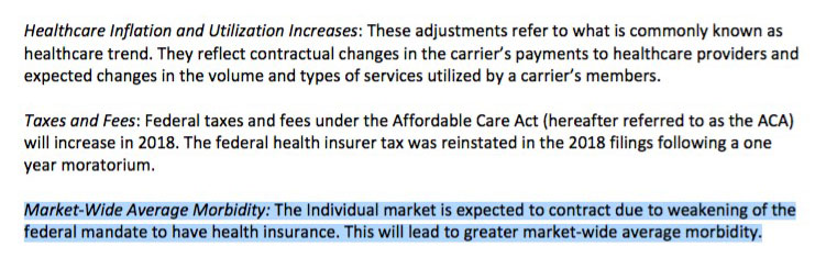 UPDATE: Several commenters have rightly noted that most of the carriers lost money in 2016 ($141 million collectively out of $1.3 billion in total premiums...about 10.8% overall), which means that in order to make a profit they'd have to bump up their prices about 11% beyond their "increased medical costs" regardless. Fair point...except that each of them received rate hikes from 7-25% for 2017 already. I have no idea what their profitability has been/will be for 2017.