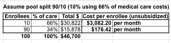 OK, what about a 90/10 split? According to Kaiser, 10% of enrollees typically use up about 66% of medical expenses. How does that play out?
