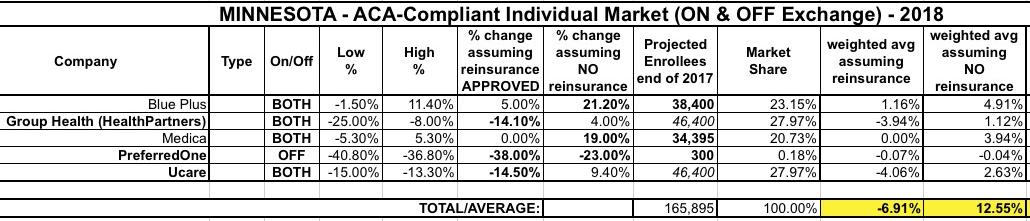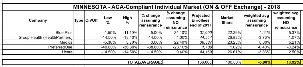 PreferredOne is off-exchange only anyway, so the CSR issue doesn't factor into their rates anyway (which is probably why it's so low...a huge reduction whether reinsurance is included or not). The only noteworthy thing here is that they're down to only 300 enrollees anyway, making them a rounding error this year: