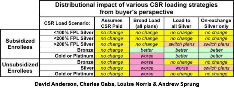 Note: This post is a joint effort with colleagues who have closely tracked the CSR chaos induced by Trump and Republicans in Congress. Dave Anderson is a former health insurance analyst, now a healthcare scholar at Duke, and a blogger at Balloon Juice; Louise Norris is co-owner with her husband Jay of a unique health insurance brokerage for individual market customers, and a top source of marketplace information and analysis at her own blog as well as at healthinsurance.org and elsewhere. Andrew Sprung writes about healthcare policy on his blog, xpostfactoid, as well as at healthinsurance.org and other publications.