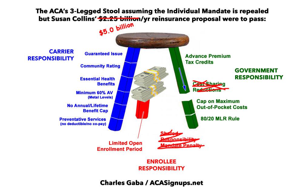 Last week I noted that Maine Republican Senator Susan Collins' proposal to "solve" the problems created by repealing the ACA's individual mandate (passing the Alexander-Murray CSR bill and her own Collins-Nelson reinsurance bill) would only mitigate a small portion of the damage caused by such a mandate repeal.
