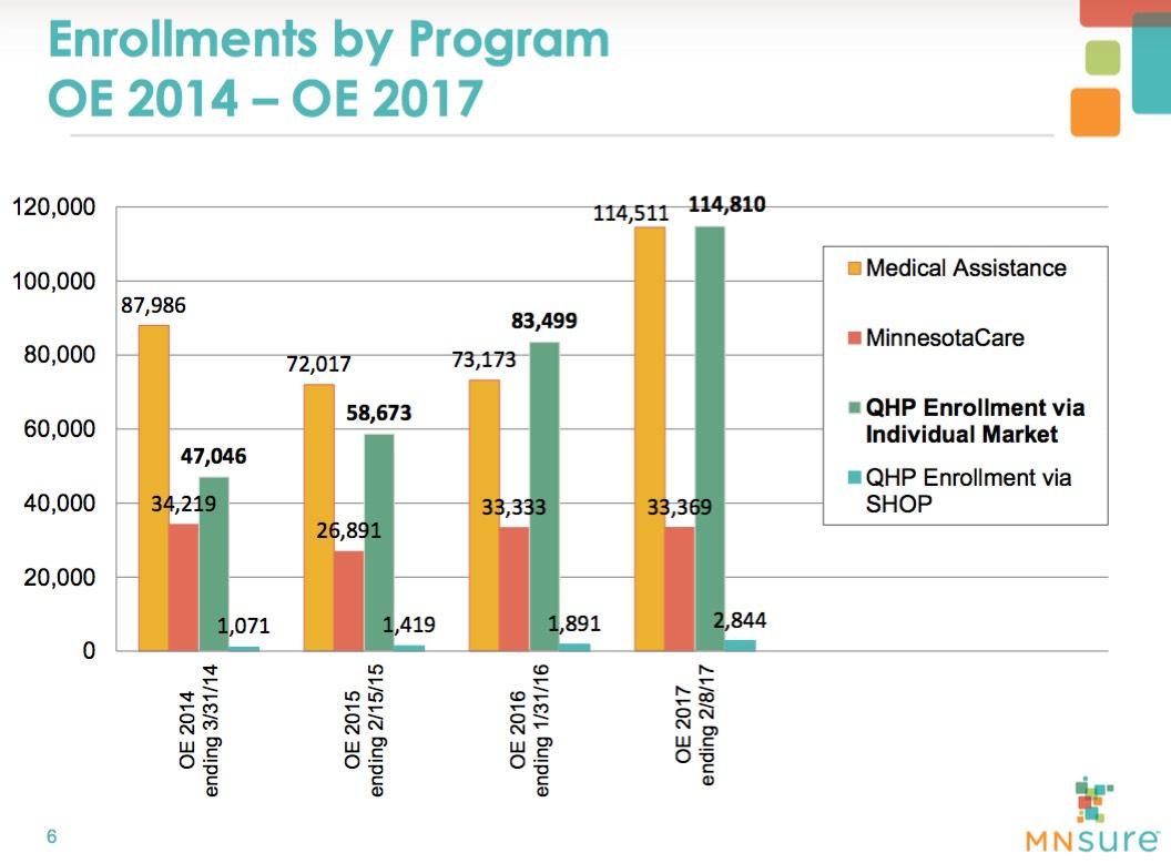 The 2018 open enrollment period is November 1, 2017 to January 14, 2018. Ninety-six percent of Minnesotans have health coverage--the highest percentage in state history. This year, an individual earning up to $48,240 a year, or a family of four earning up to $98,400 a year could qualify. More information can be found at MNsure.org.