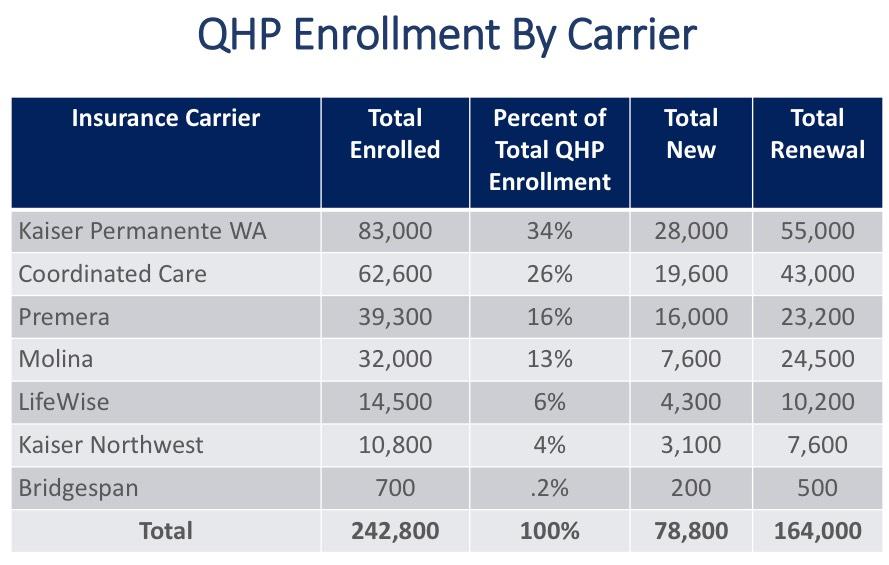 Usually I'm only interested in carrier market share breakouts over the summer/fall since I need this info to calculate weighted rate change averages. However, the table to the top left above is the first time I've seen an apples-to-apples comparison of payment rates between carriers. It looks like Kaiser and LifeWise are pretty good at getting their customers to pay up, but BridgeSpan and Molina, not so much: