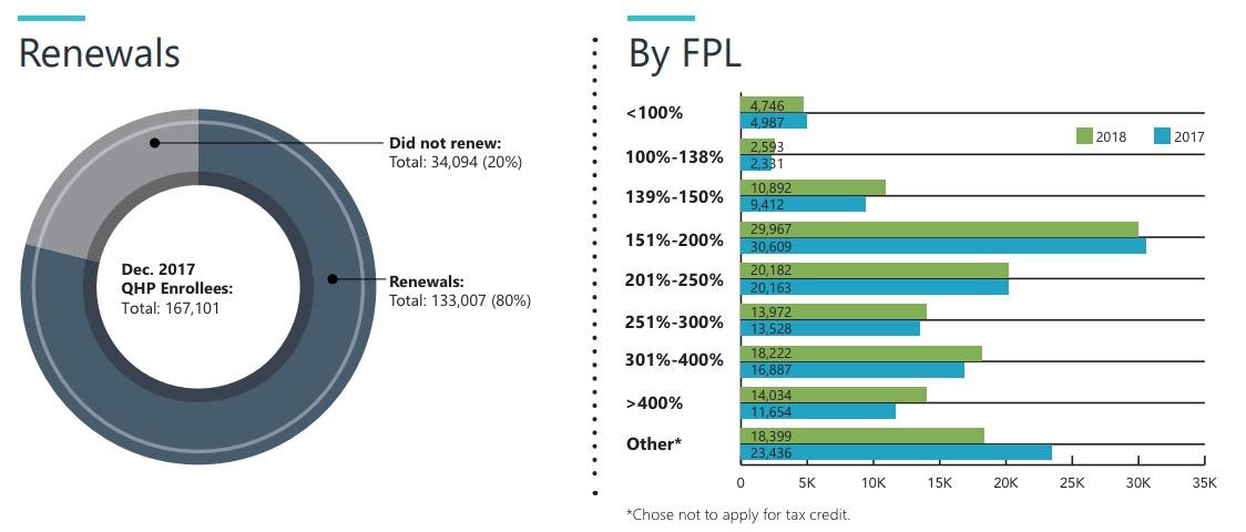 • More than one-third of QHP enrollees are new. Nearly, 77,000 new customers enrolled in a 2018 QHP, which accounts for just over 36 percent of all QHP enrollment. Additionally, half of those new enrollees qualified for subsidized coverage.
