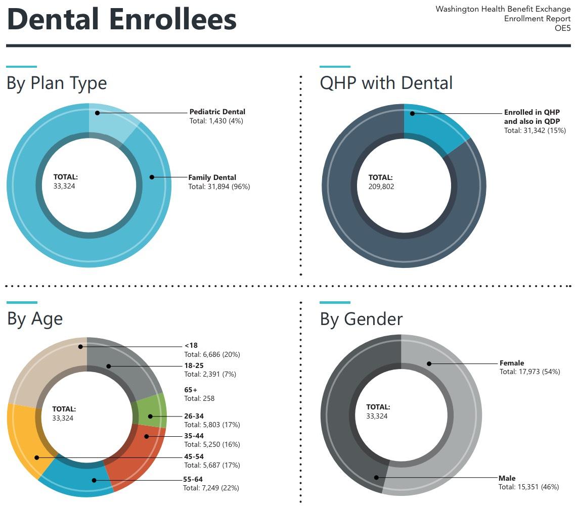 This enrollment announcement is provided in more detail in the most recent Open Enrollment Report released by the Exchange. The report offers a comprehensive look at the more than 1.72 million Washington Healthplanfinder customers who are enrolled in health and dental coverage as of Feb. 2018, including the 1.5 million residents currently enrolled in free coverage through Washington Apple Health (Medicaid MAGI/CHIP).