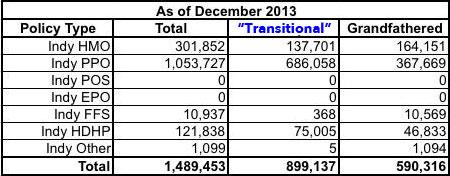 Every state had some people enrolled in grandfathered plans, and most also had some enrolled in transitional plans. California wisely chose not to allow transitional enrollment, so the only individual market policies available since 1/1/14 have been ACA compliant or grandfathered. However, until today, I had no idea how many grandfathered enrollees there were in CA (or most other states, for that matter).