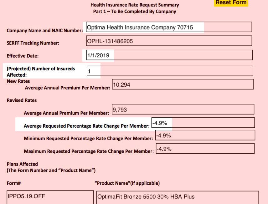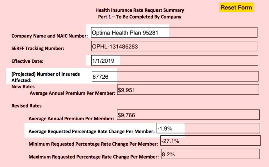 That brings me to the 2019 season. Every year, Virginia is the first state to release preliminary rate change filings for the upcoming season, and this year is no exception. As Louise Norris of healthinsurance.org reports: