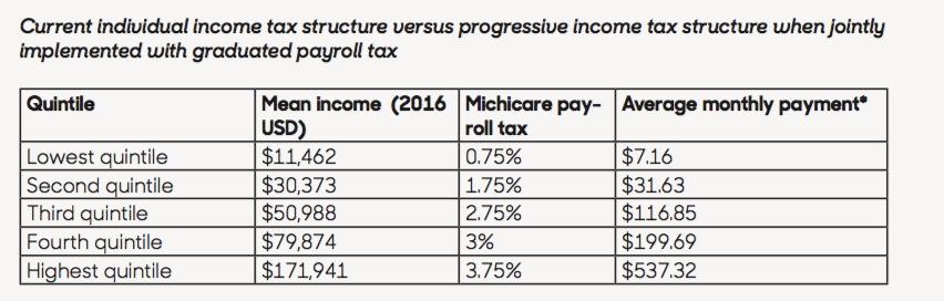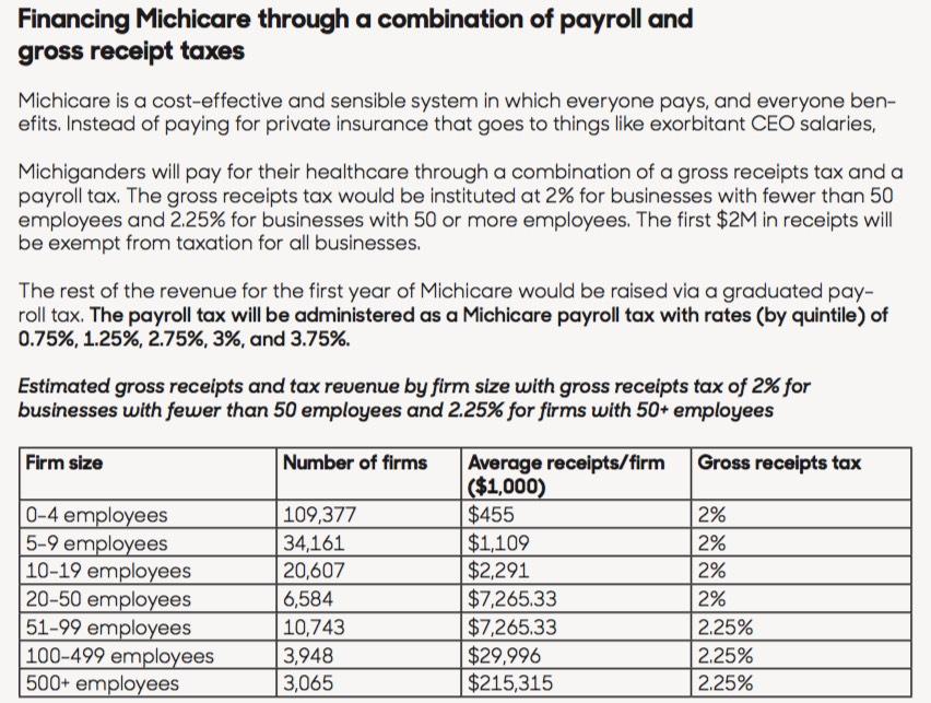 - Where did you come up with the math for the Michigan side of the proposed funding mechanisms (business tax + payroll taxes)? Are you reasonably sure the 0.75 - 3.75% payroll tax and the 2.0 - 2.25% business tax would actually generate enough funding to pay for it all?
