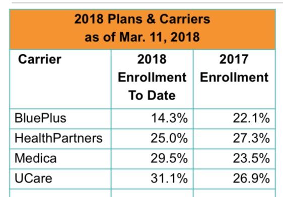 ...except there's still two problems with this: First, it only includes on-exchange enrollment for the carriers (leaving out off-exchange); and second, it doesn't include PreferredOne, which only offers plans off-exchange. This makes it effectively useless.
