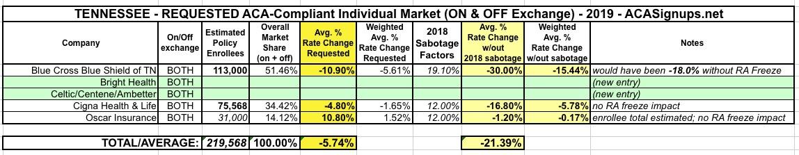 With all that in mind, here's what things look like at the moment for the 2019 Tennessee ACA individual market: