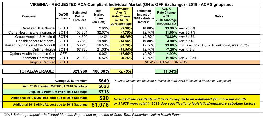 Virginia's preliminary rate requests averaged about 13.4% higher back in mid-May...about two weeks before the Medicaid expansion bill was passed and signed into law.