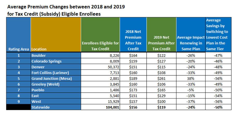 More than 130,000 Coloradans got help paying for health insurance in 2018. Renewing customers qualifying for financial help will see their net premium – their cost after the Advance Premium Tax Credit – go down 24% on average in 2019.