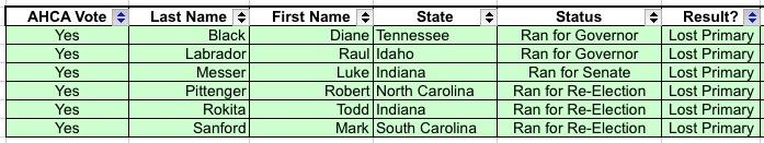 Out of curiosity, I went through the entire roll call vote and figured out exactly what the fate was of all 217 House Republicans who voted for the AHCA (It didn't need 218 votes to pass due to a handful of vacancies at the time).