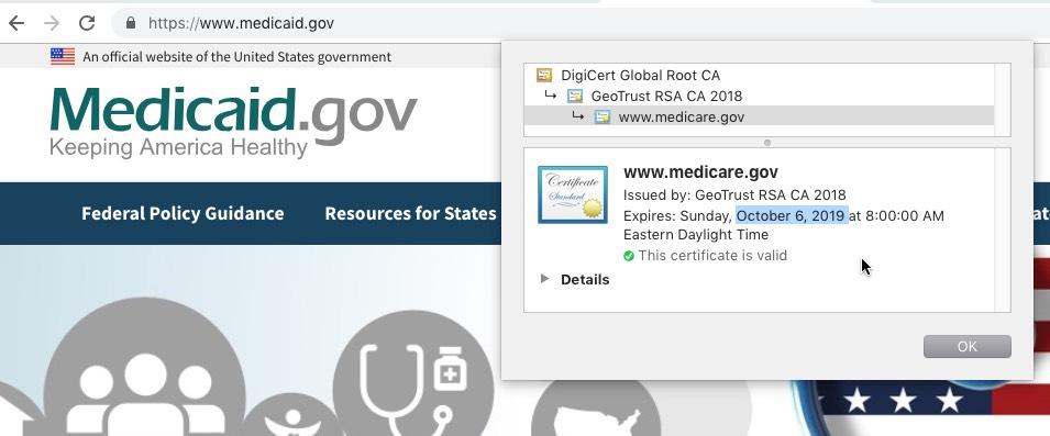 ...and out of curiousity, I decided to check out the SSL certificate status of a few key federal healthcare websites: