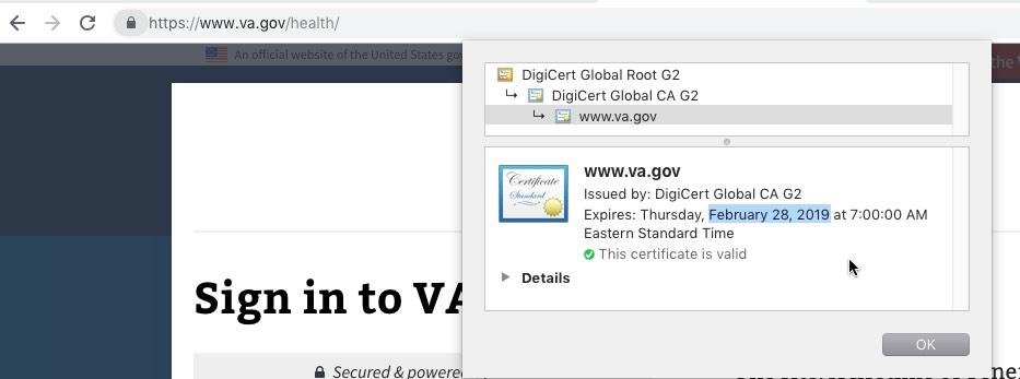 The Veterans Administration's SSL Certificate, on the other hand, will have to be renewed before February 28th.