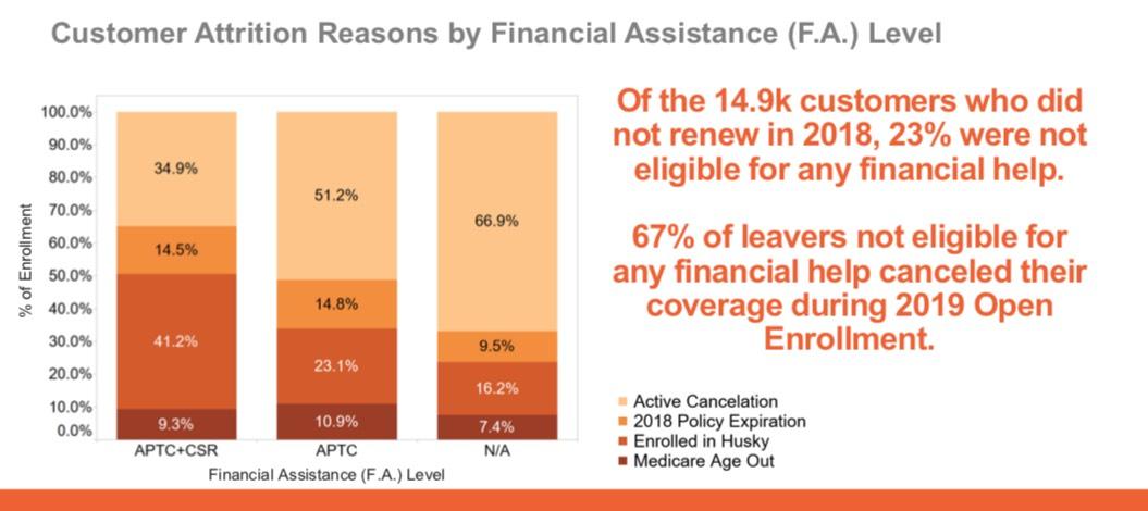 For instance, not only did they break out "enrollment attrition reasons" (that is, why 2018 enrollees who didn't renew their policies chose not to), but they actually broke that out into what those enrollees' financial assistance status was.
