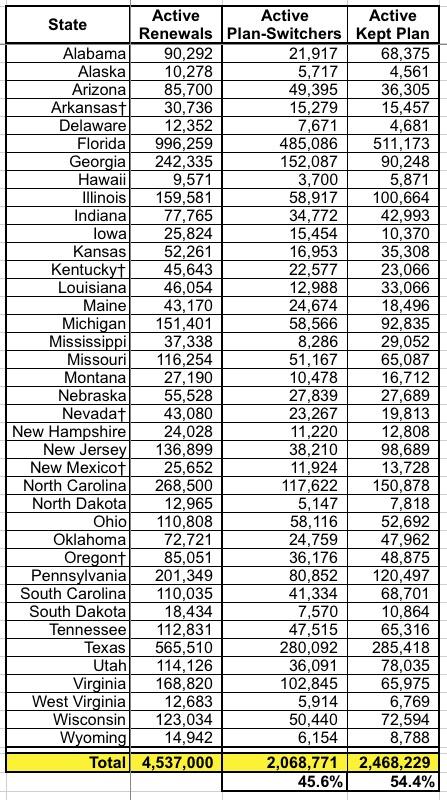 OK, first of all, I need to clean up the discrepancies between the OE6 enrollment data I had and what's in the official CMS report. Every year there are always slight variations in a few states, usually when it comes to the state-based exchanges, and this year is no exception. There were differences reported in six states; in five of them, CMS reported lower enrollment numbers; in one the CMS tally is higher: