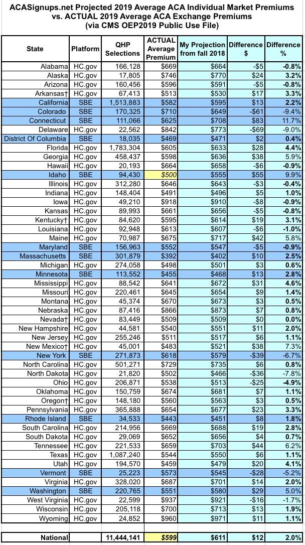Damn I was close: My 2019 ACA premium projections vs. actual 2019 ACA premiums