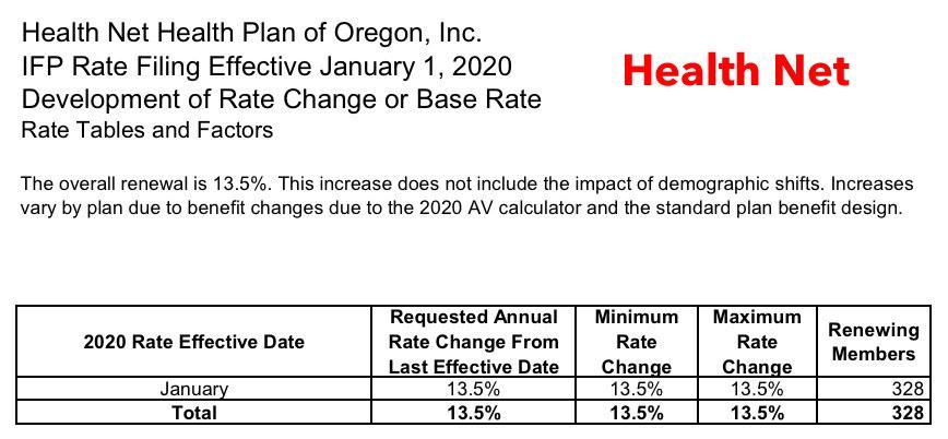 That seems to be pretty cut & dry: Preliminary requested rate changes ranging from a 3.2% drop to a 13.5% increase on the individual market, averaging 3.3%.