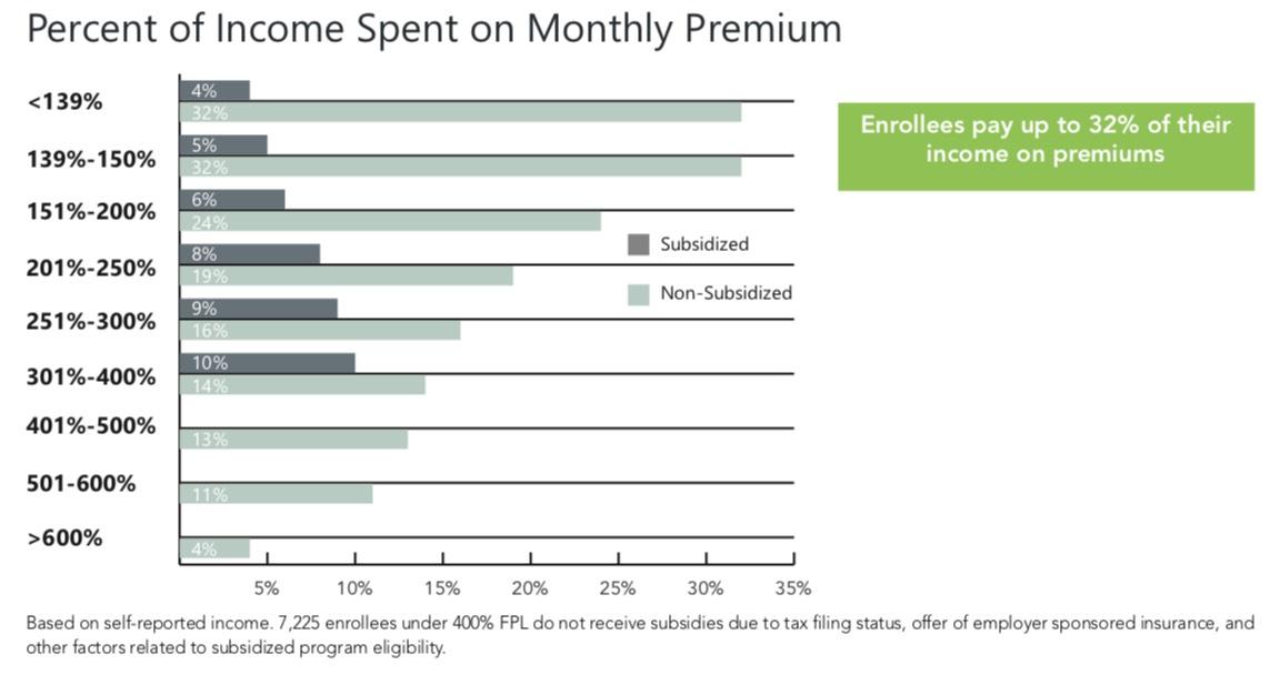 - Non-subsidized customers pay up to 32% of income on their premium
