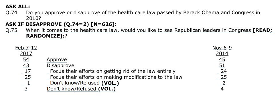 UPDATE 2/24/17: The Kaiser Family Foundation just released their latest monthly survey and found similar (if less dramatic) results: