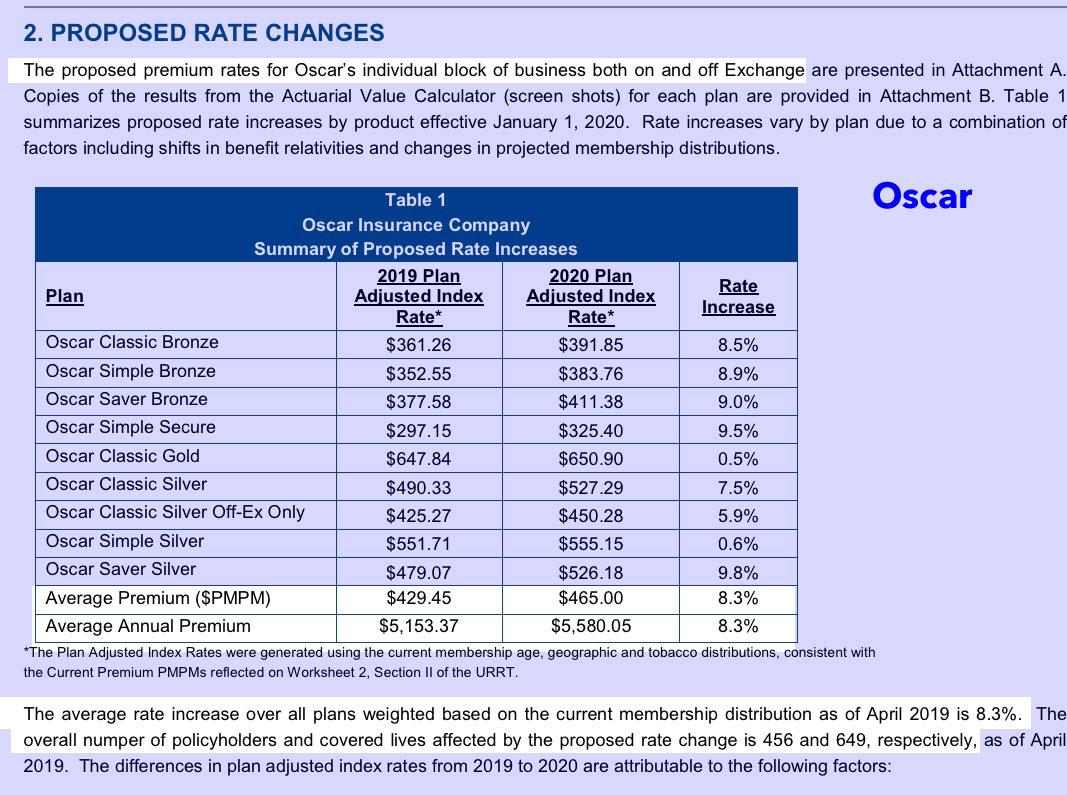 Last year individual market carriers here in my home state of Michigan only raised premiums 1.7% on average in 2019, with Oscar Insurance Co. being a new addition to the market. For 2020, they're reducing average premiums by about 2.0%. Oscar made very little headway in their debut year, only enrolling 649 people statewide.