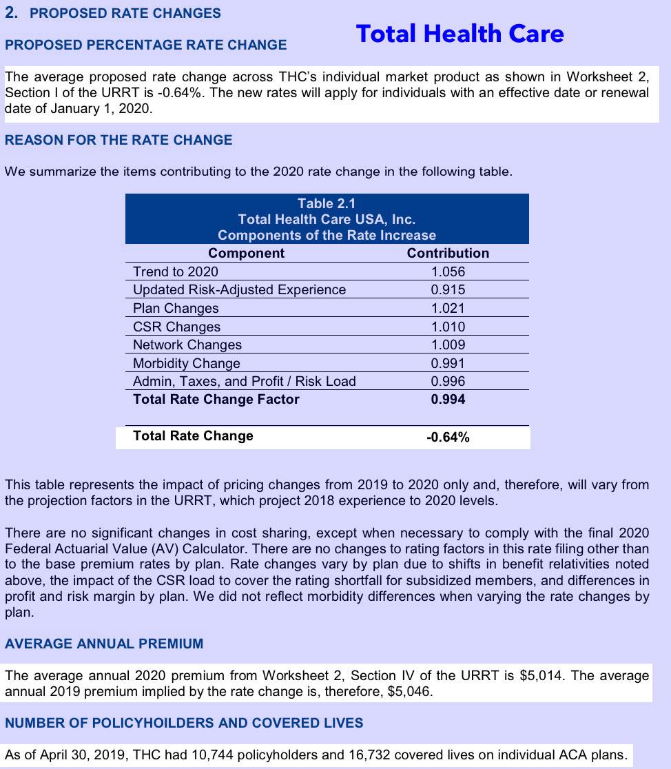 Michigan: PRELIMINARY 2020 ACA Exchange Premium Rate Changes: 2.0% *decrease*