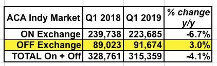 OFF-exchange enrollment, on the other hand, dropped 3.4% in Q1 2017 and an ugly 14.0% in 2018...but increased by 3.0% in 2019.
