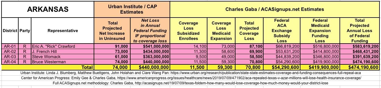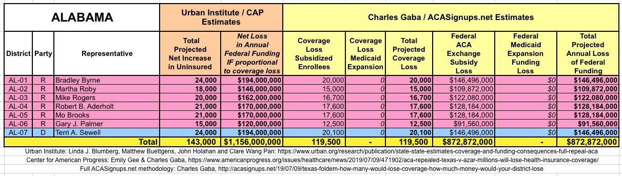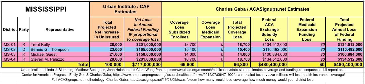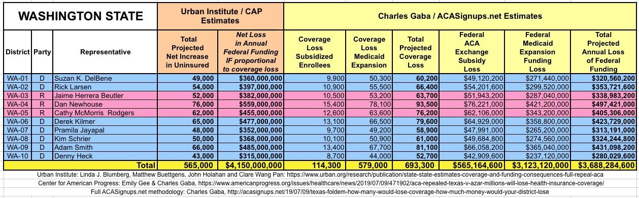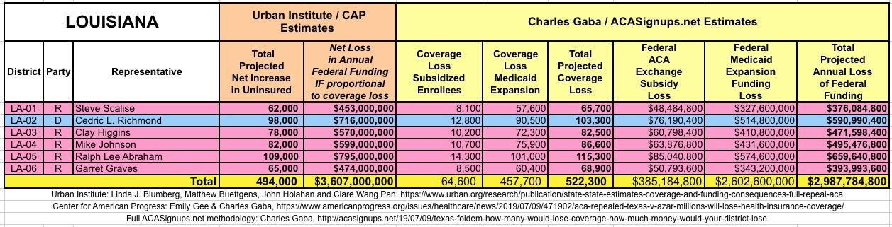I've also gone further yet by tallying up the coverage loss and federal funding loss using a different method to see how it compares with the Urban's Institute's numbers.