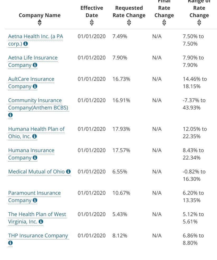 The good news about the Ohio Insurnace Dept. is that they make it easy to find out which insurance carriers are participating on the ACA market and what the overall, weighted premium change is statewide.