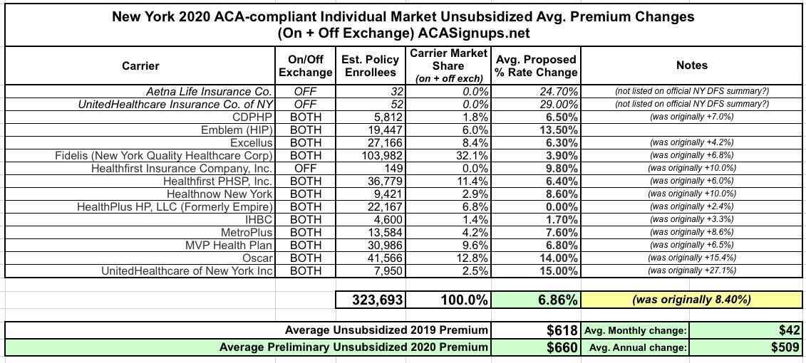 New York: APPROVED 2020 #ACA premium changes: 6.8% increase