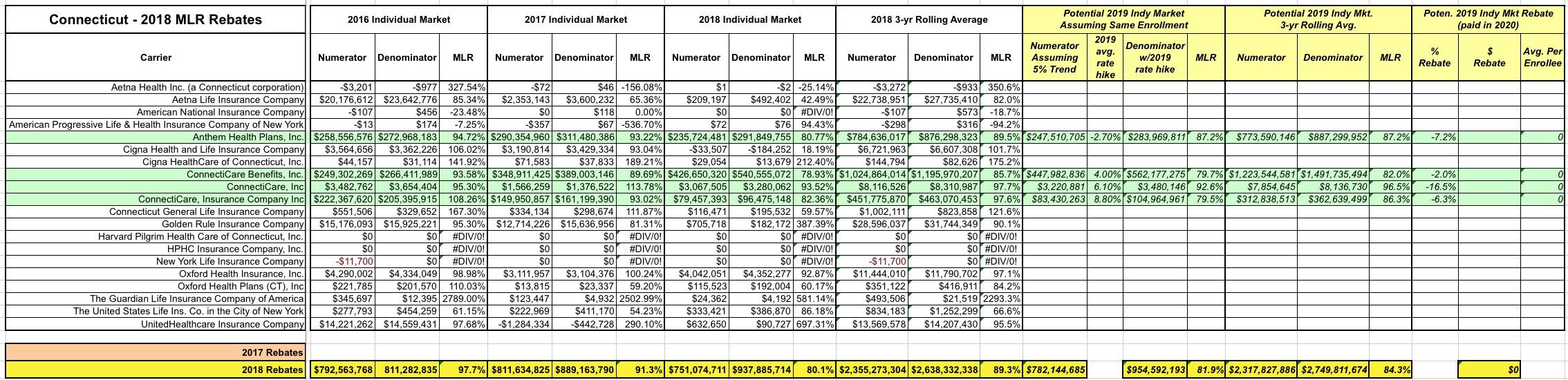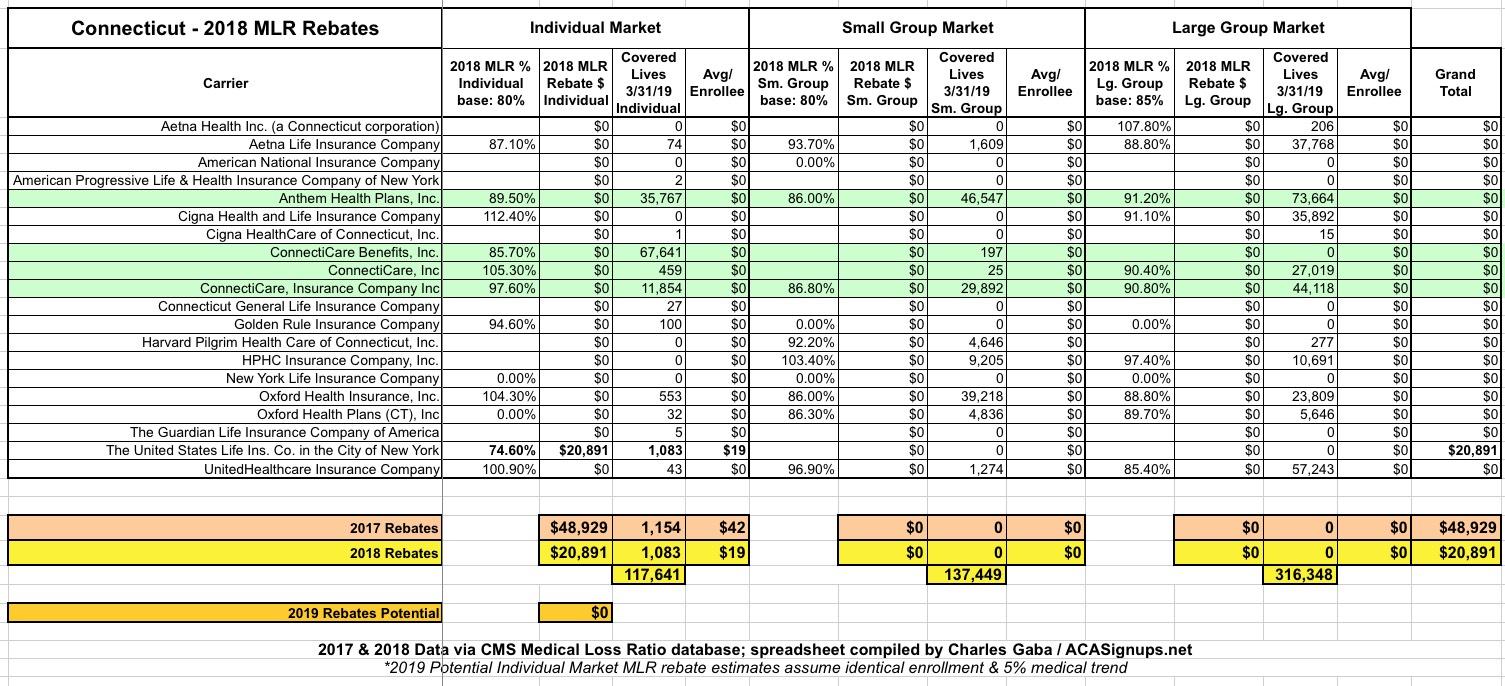 Exclusive! Connecticut: 2018 MLR Rebate Payments (& potential 2019 rebates)